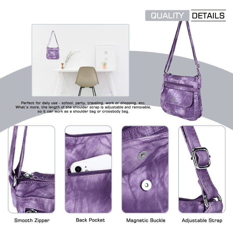 High Quality Material: This crossbody handbag purses is made of ultra-soft, wear-resistance, anti-scratch, lightweight washed PU leather. Thick and sturdy crossover strap has good handfeel also can be comfortable put on your shoulder, it is a good handbag for women.