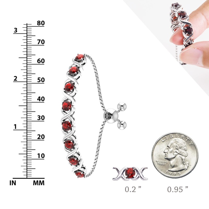 ?Fine Jewelry? Belinda Jewelz XO Bolo bracelet looks more elegant, luxury and on-budget. Bright brilliant Garnet precious gems, high quality polish finish rhodium plated 925 sterling silver non tarnish and the bracelet is set with January Birthstone Garnet.