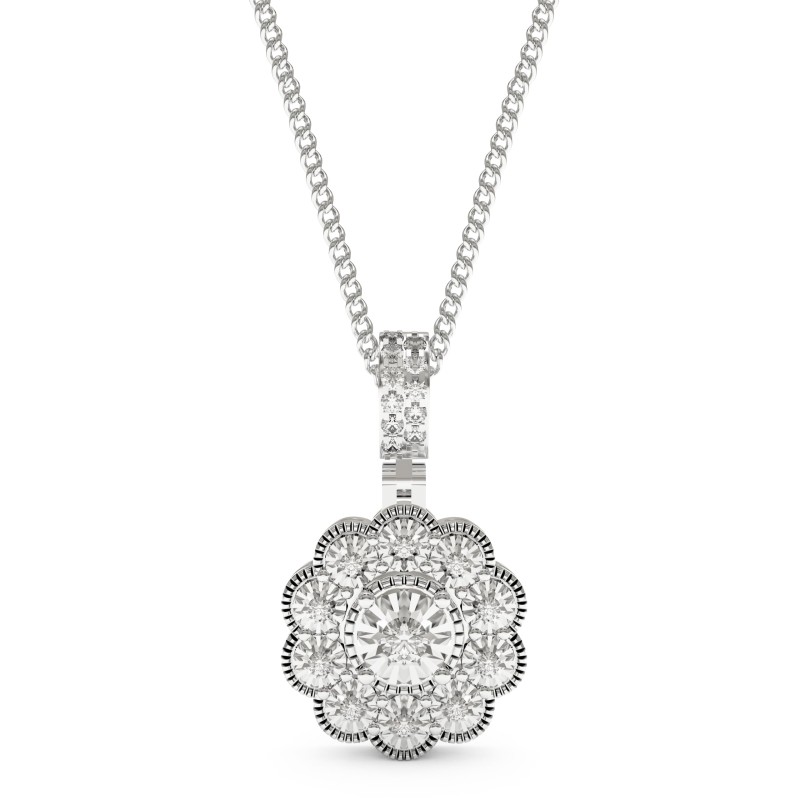 • TIMELESS BRILLIANCE : Elegant Halo pendant featuring 0.22 Cttw Round Cut Diamond. Crafted in 14k White Gold for enduring sophistication and charm. Halo design exudes timeless elegance, suitable for various occasions, adding a touch of grace to any ensemble. Versatile for different ages and styles.